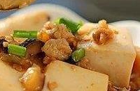 4、倒入豆腐,翻炒,轉(zhuǎn)中小火,加入料汁勾芡至濃稠即可。