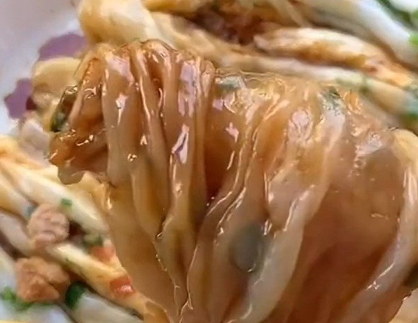蒸熟起屜后,你會看到薄薄的一層粿皮好似蟬翼般晶瑩剔透,里面包裹著的豐富餡料都清晰可見。汕頭腸粉的醬汁,還會在傳統(tǒng)醬料配方的基礎(chǔ)上加入芫荽、蝦米和香辛料如八角、香葉等一起熬煮,既咸又鮮,既有香料氣息撲鼻,余味中又帶有一絲絲甜,讓人回味無窮,淋上醬汁的剎那仿佛整條腸粉之魂都得到了加持。